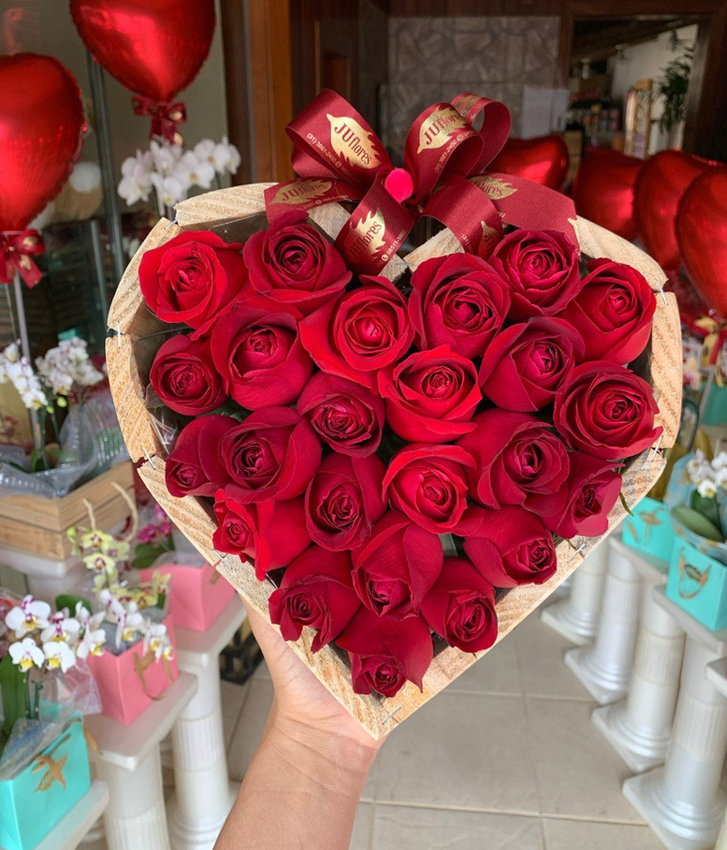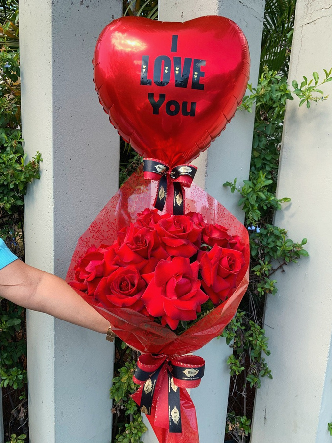 Bouquet com 18 rosas + balão coração: R$ 395,00 sem balão: R$ 350,00