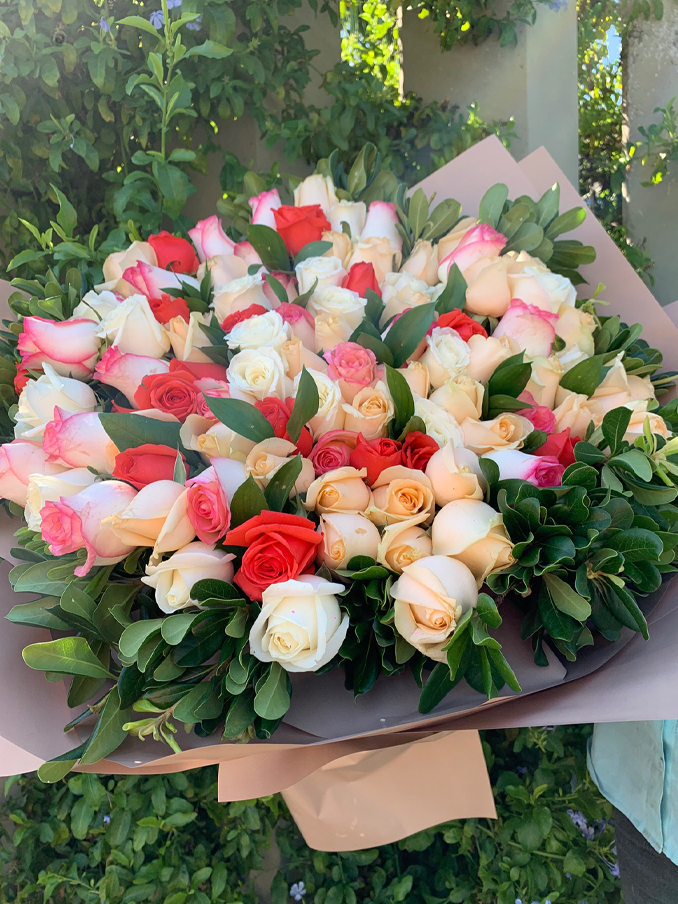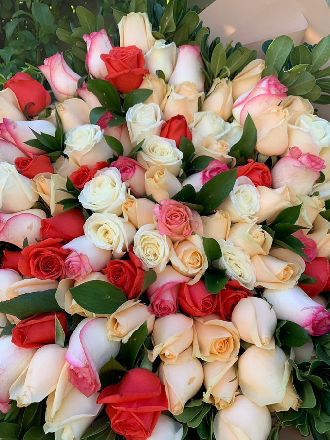 Bouquet 100 rosas coloridas R$ 1.950,00