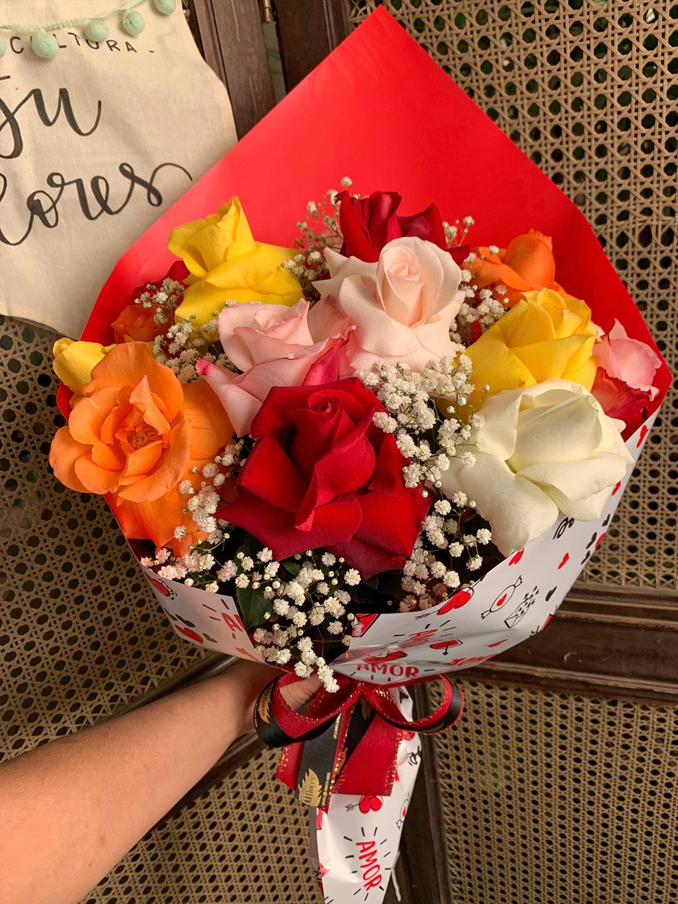 Opções de Bouquet de Rosas de cores variadas (18 rosas):
